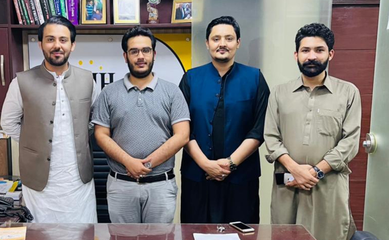 چوہدری مدثر وڑائچ ، چوہدری عمیر امان وڑائچ، میاں زین اعظم، ملک بلال اعوان کا گروپ فوٹو۔